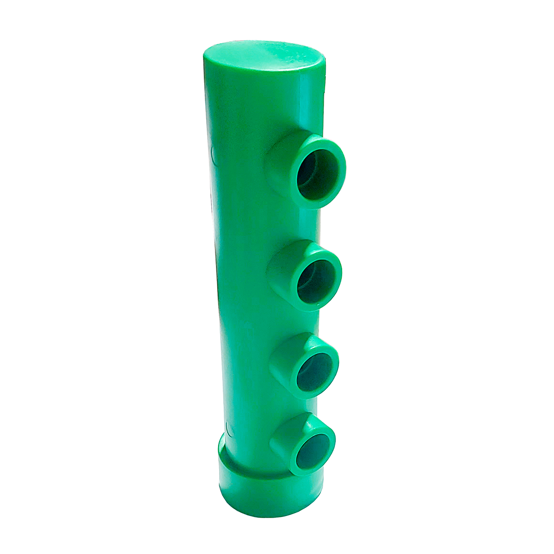 For fusion pipe connections to manifold with four outlets to different points of hydraulic and industrial installations.